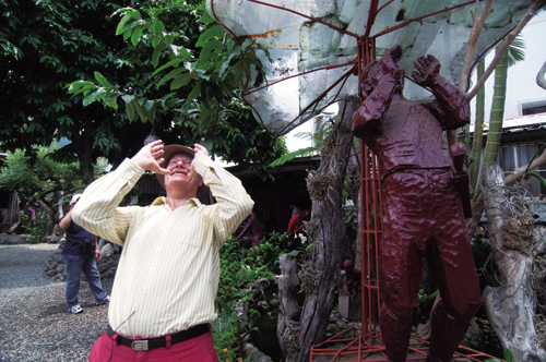 和解儀式後,胡浩德又走訪雕刻家、卑南族第69代頭目哈古(漢名陳文生)的工作室,看到店中雕像豪邁呼喊的樣子,胡浩德也作勢模仿。