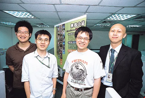 「無名小站」年輕的站長群全都畢業於交大資工所。由左至右分別為潘韋丞、簡志宇、吳緯凱、林弘全。