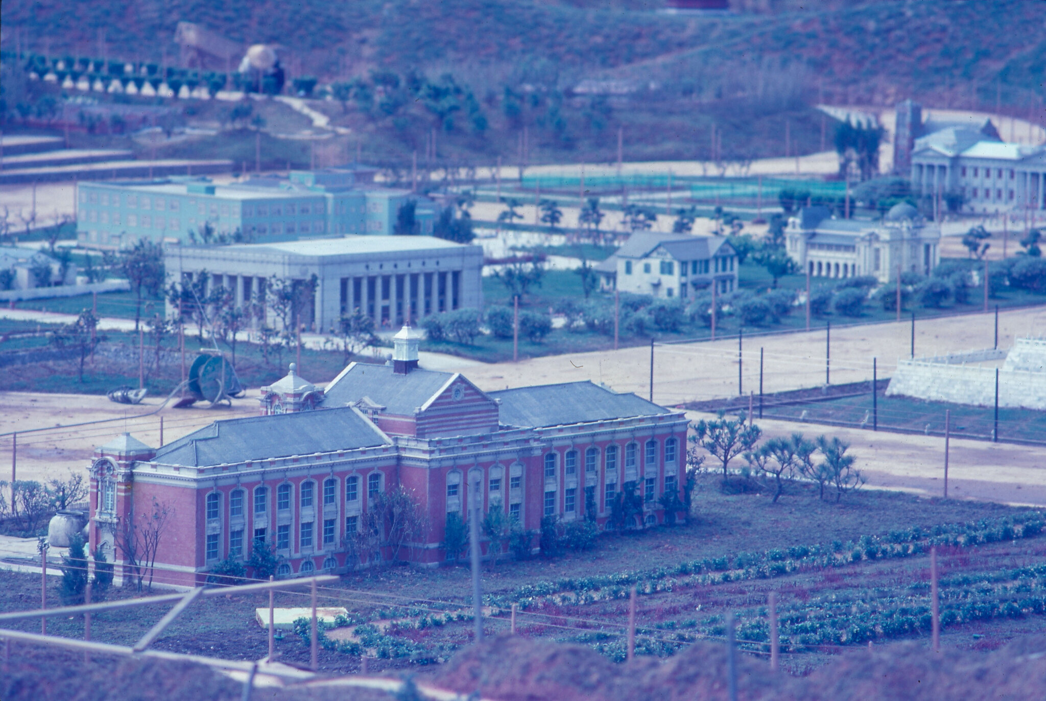黃文彬還與中原大學建築系進行建教合作,請該系學生於寒假期間,將國內各主要建築物和古蹟,做實地測量、繪圖、拍照工作,再縮小成1/25的比例,交由工匠製作。