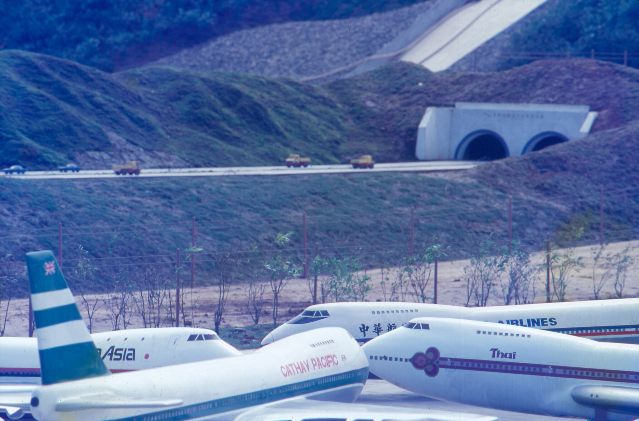 圖6:小人國內的交通建設部分,前為桃園中正國際機場停機坪,後為高速公路八堵隧道。(鄭元慶)