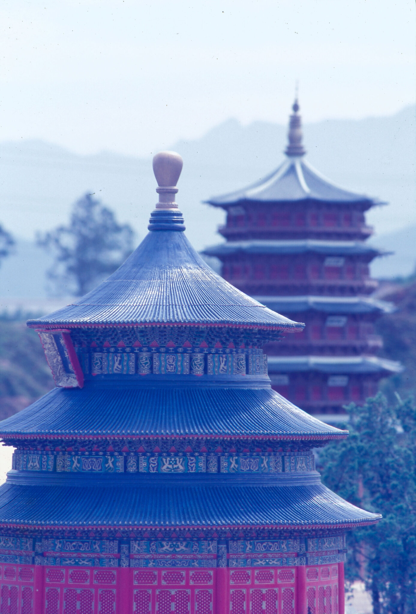 圖2:前為北平天壇,後為山西省應縣的釋迦塔。(鄭元慶)