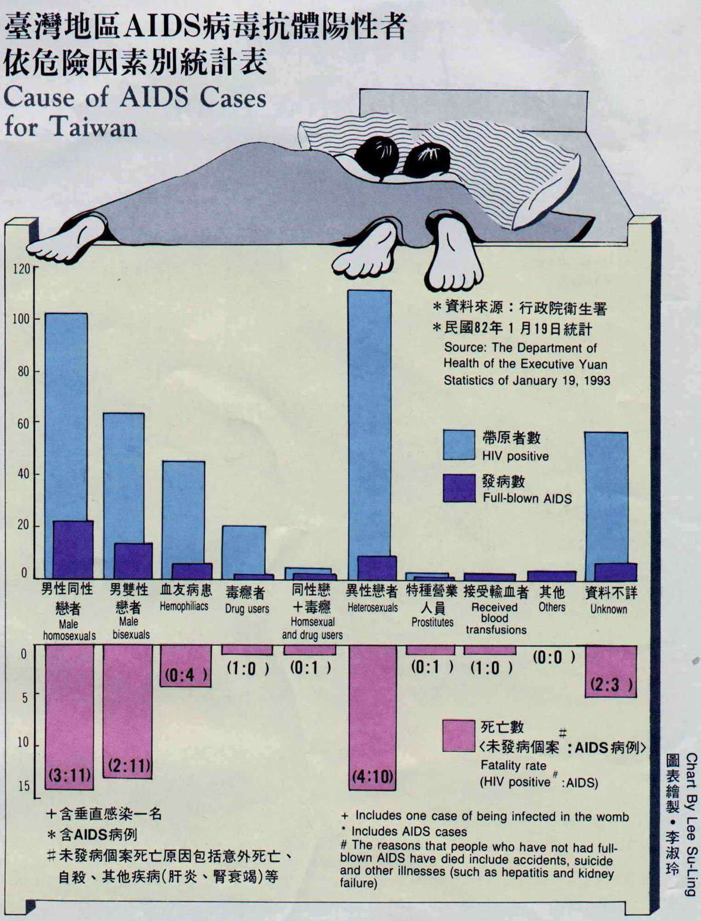 台灣地區AIDS病毒抗體陽性者依危險因素別統計表。
