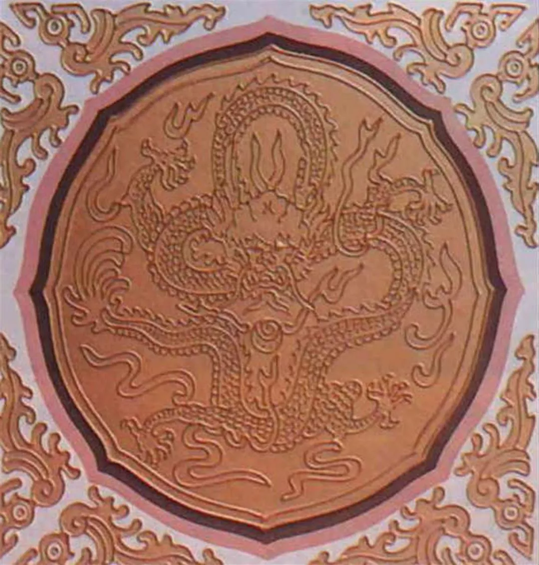 十五歲初中畢業就進入中國宮殿當學徒,工作了三十多年的老師傅雷永順解釋:高高在上的中國天花,是由一塊塊一尺半見方左右的木板拼組而成,這每一小塊天花板,先要用豬血加石粉打底,填平木材的縫隙,上過底漆後,然後在平滑的木板上蓋上有無數細洞的設計圖,灑上一層紅粉,粉末漏過點點小洞,就能快速地勾畫出設計圖案的草圖。