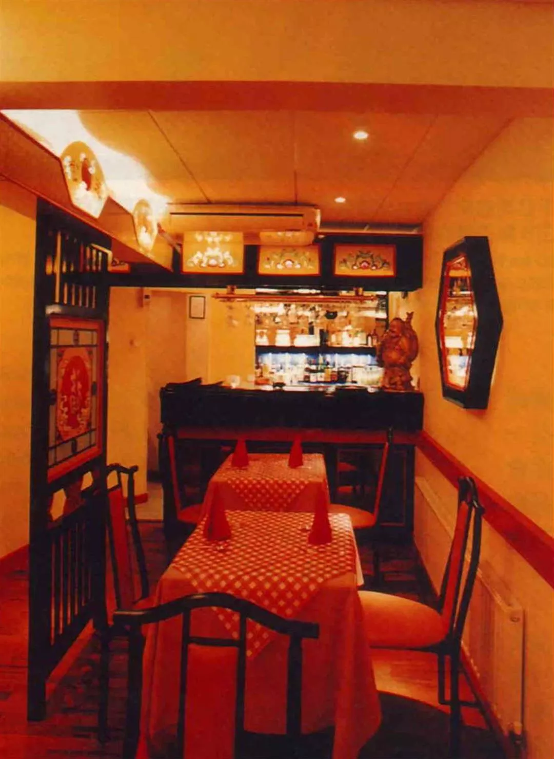 一九七○年代初,隨著美國總統尼克森訪問中國,引起全世界一陣中國熱潮,連帶著海外的中國餐廳也跟著門庭若市。近年來中國市場開放,中國學、中國熱更是方興未艾,上中國餐廳的年輕一輩顧客層也越來越多。為了吸引年輕人,在設計上,宋文堯更捨棄繁重的宮殿式配件,就是明亮清爽的白牆,紅色格子桌布,然後加上刻有中國文字的隔屏,和黑色鐵管仿明的座椅,呈現的又是一種年輕現代感的中國風。