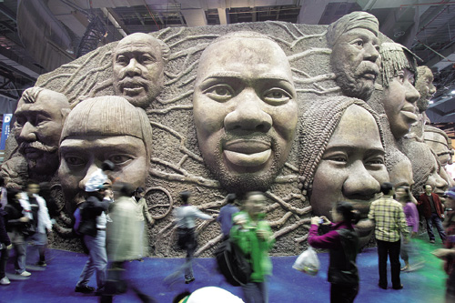 其他像是取材自簡體字「礼」右半部而設計的震旦館,由層次漸進的5個展區演繹玉與中國文化深厚的淵源;以及取材自非洲多元族群、地理景觀、豐富物產等元素設計的非洲聯合館,館內以大型立體泥雕舞台、色彩鮮豔的集市,與茅草屋、木雕、石造建築等極具「非洲特色」的佈置來凸顯該地區的多元文化。雖然不像其他展館強調的高科技多媒體展演,但其「與非洲體溫接近」的人文色彩設計基調,卻更能觸發參觀者的共鳴。