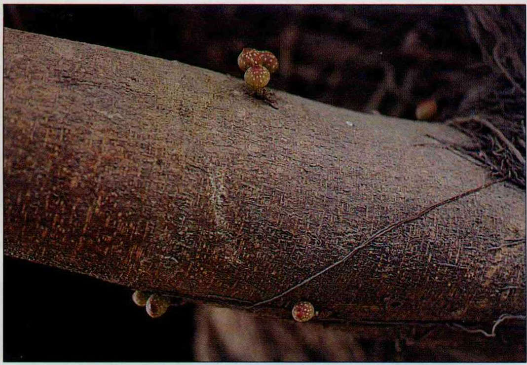 雀榕主幹上開出小花,植物學者稱之為「幹生花」,是熱帶雨林植物的特徵。