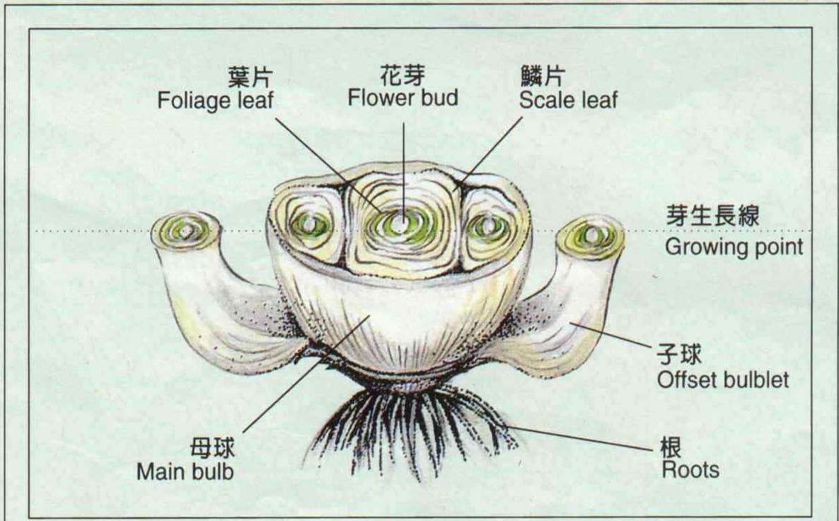 當然,其中真正的關鍵是溫度。如果在台灣以外,一般說來,平均氣溫在攝氏十度的地方,應該在預計開花日前四十天下水,十五度三十天,二十度則二十五天即可。另外要記得盤中盛水不可過深,及根即可,且要經常更換清水。