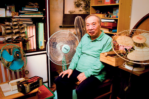成長於物質困乏的年代,老一輩人普遍有深切的惜物觀。年高八旬的蘇爺爺,從年輕起就熱愛動手修理舊物,圖中電扇買來、撿來都有,數量遠超過家中所需。