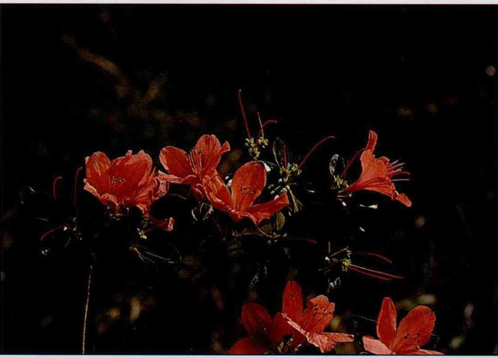 特殊的環境,也讓花兒只在固定領域展現生機,烏來杜鵑只依戀於北勢溪兩岸;南湖杜鵑只集中南湖山區,但也成就了只見於台灣的十種特有杜鵑。