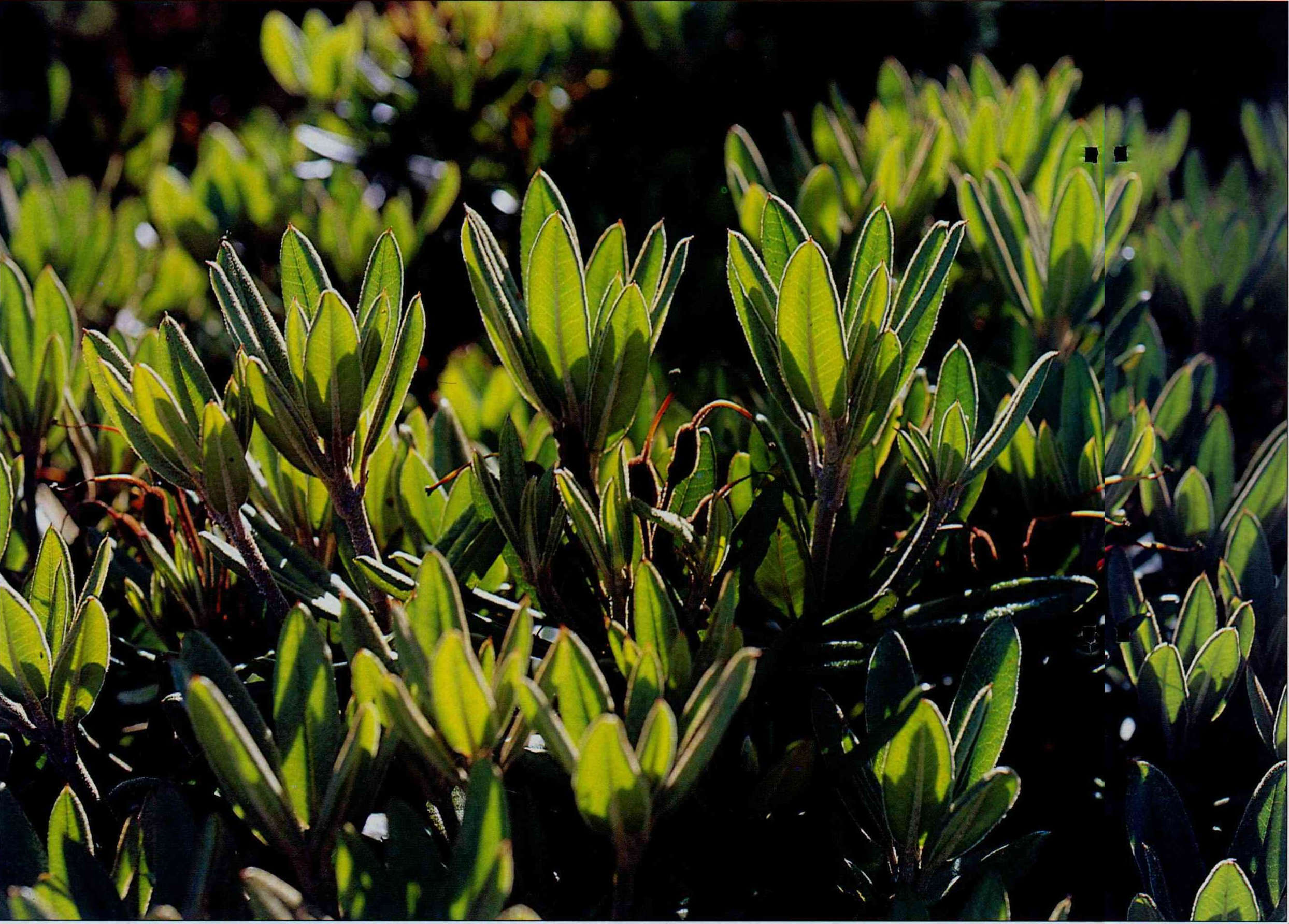 野地杜鵑由台灣大自然一手調教而出。隨著孕育花朵生命的土質、水分、坡度、陽光強度的差異,各種生命展露出自己與眾不同的求生技藝。終年強風不斷的棱線上,高山杜鵑就匍伏岩壁間,葉片越長越厚實,以保存水分,減少熱量蒸散。