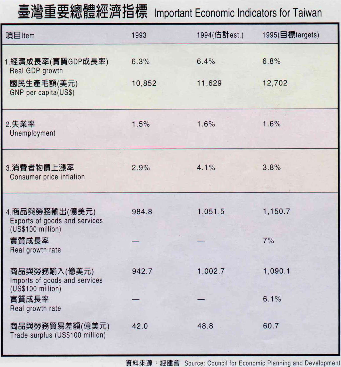 台灣重要總體經濟指標資料來源: 經建會。