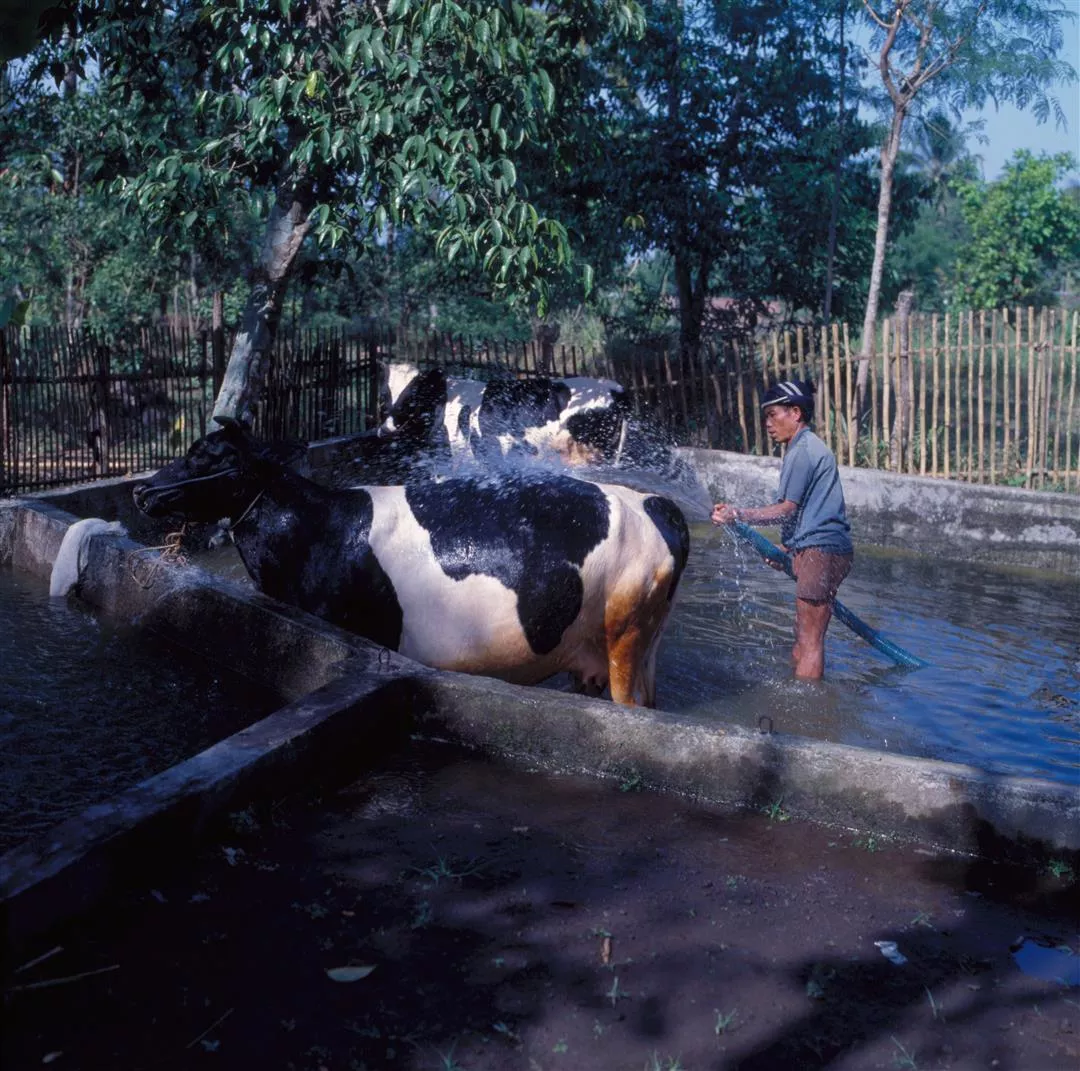 圖3:日惹團為農民建公廁、洗牛槽等,一方面做農村建設,另一方面則收集水肥灌溉田地。圖為農民在洗牛槽中為牛洗澡。(鄭元慶)