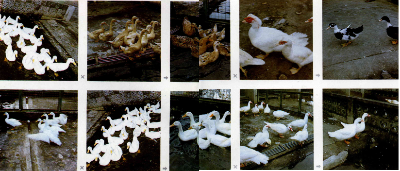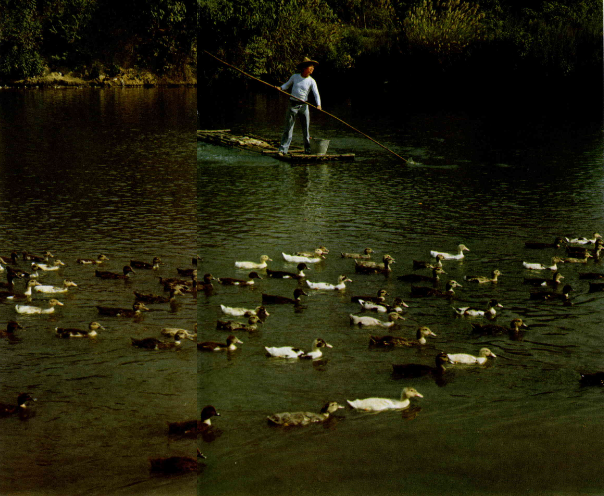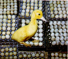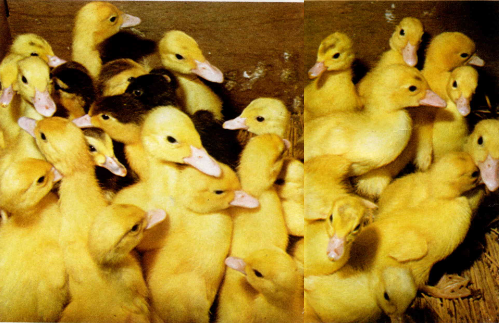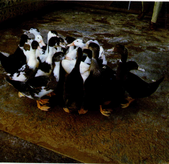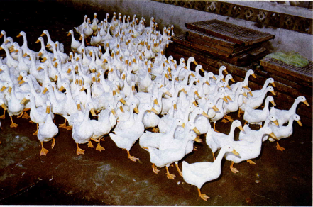 這種三品種的白毛鴨不僅國內歡迎,東南亞許多國家也常來採購,不過他們運去的卻不是小鴨,而是鴨蛋。經過選擇的受精蛋在孵化器中孵化二十天後,即行裝箱空運,運至目的地後約七天左右,小鴨即自己脫殼而出,這樣不僅省了檢疫手續的麻煩,在運輸上也省了空間、飼育與管理等的困難。我們每年以這種方式外銷孵蛋七百萬個以上。醃蛋外銷數目也不算少,每年總在一百萬個以上。至於羽毛外銷,每年也在四百萬公斤左右。