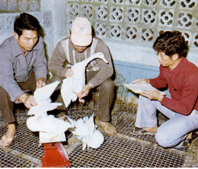 目前三品種白毛鴨的白毛出現率尚非百分之百,總有30%左右的雜毛鴨出現,或許是隔代遺傳,或許是突變,養鴨中心的工作人員正在全力克服之中。所以,研究分析工作一點也不能大意,優良的公鴨、母鴨,才能被選來傳宗接代,這種選種的工作,說來簡單,其實是多少智慧、經驗與心血的累積,其間也有失敗,也有失望和灰心,但他們總是咬緊牙關,振作全心與全意志地挺過來了。養鴨人家賺了錢,國家賺了外匯,這一批默默工作的幕後功臣,豈不值得我們書記為念?