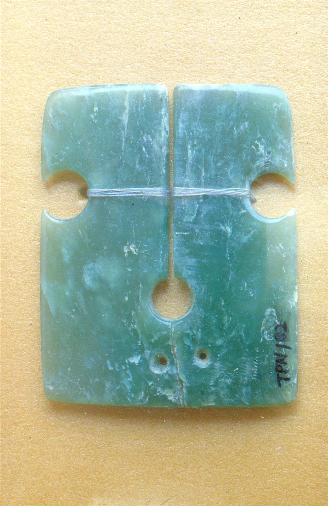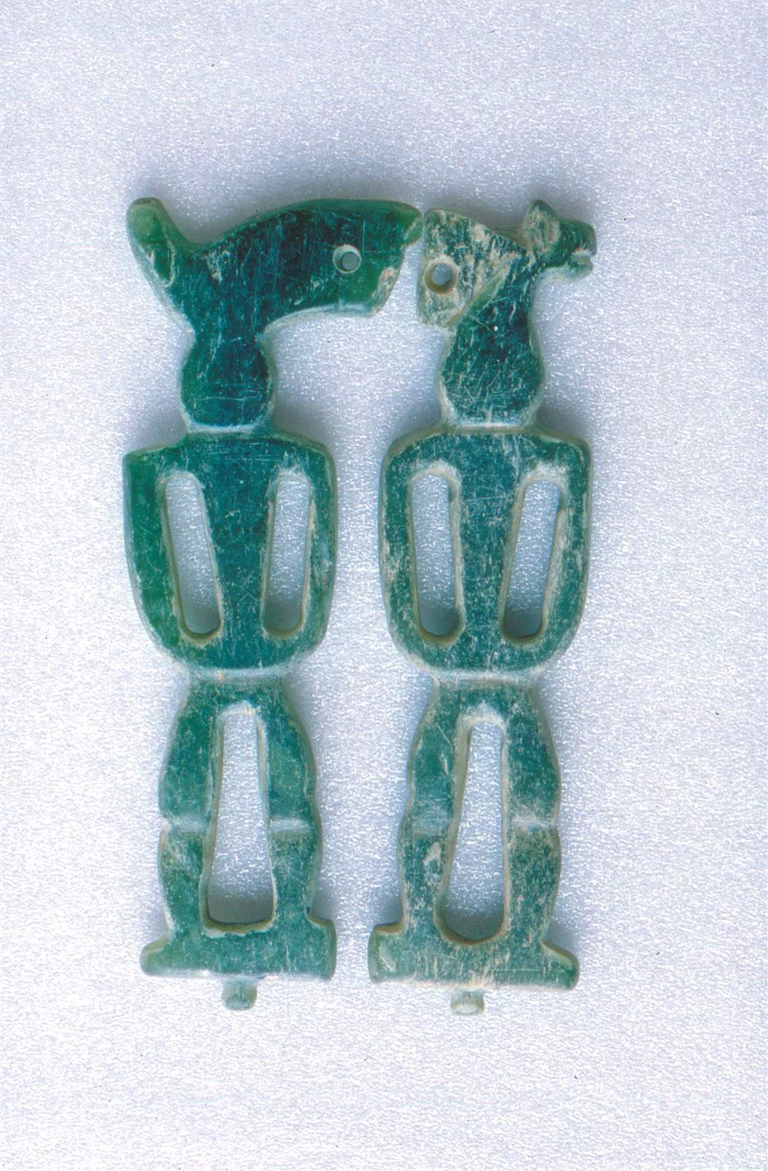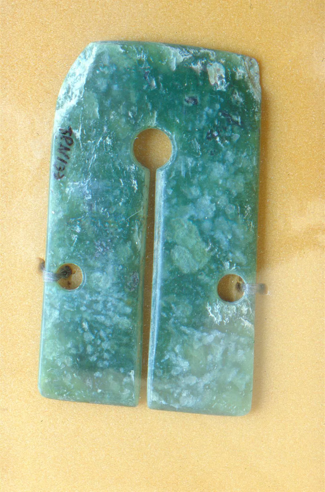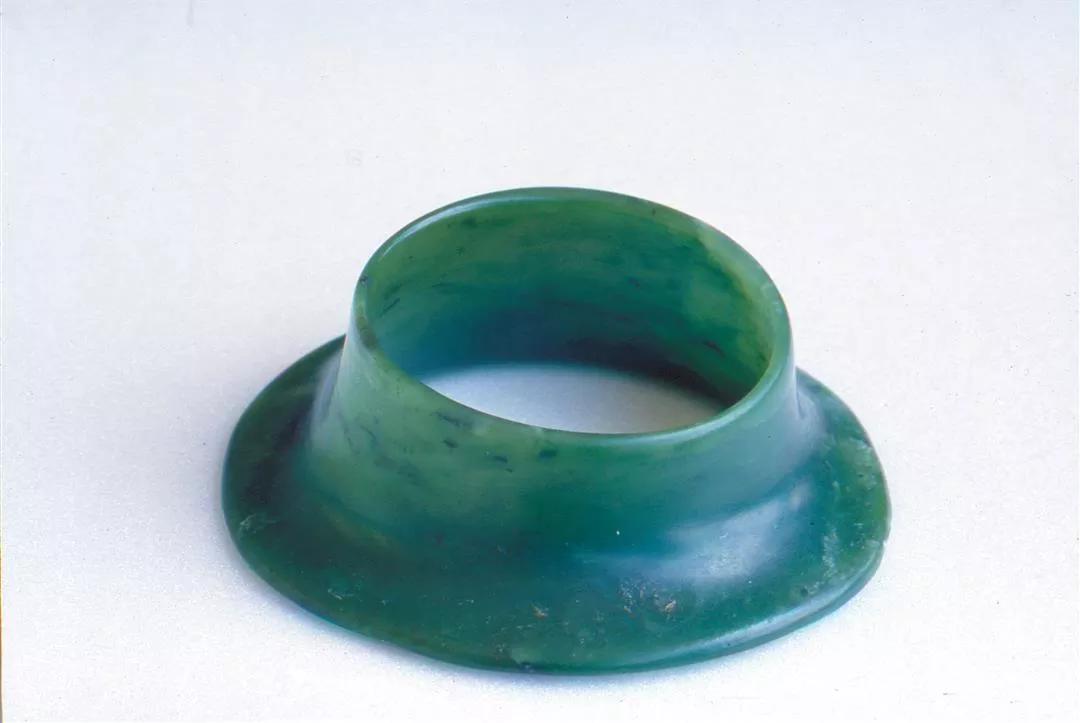 目前保存在台東縣政府的卑南玉器飾物,多年前由縣府挖出。(張良綱)