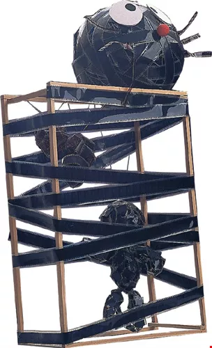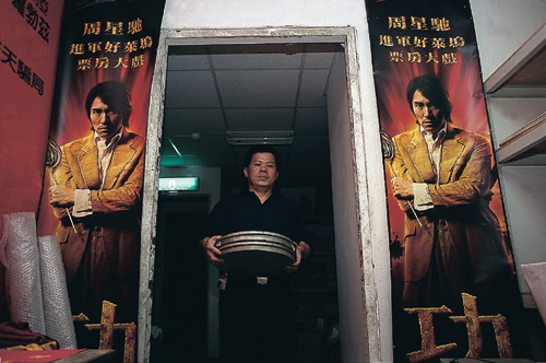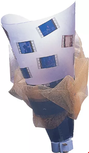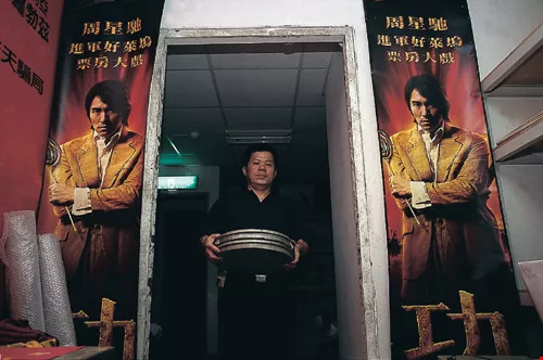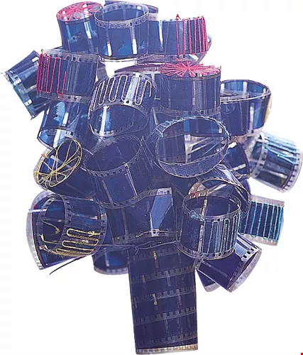 萬代福戲院改為多廳放映後,放映師拿著拷貝來回穿梭,十分忙碌。右圖為萬代福利用膠捲做成的藝術品。