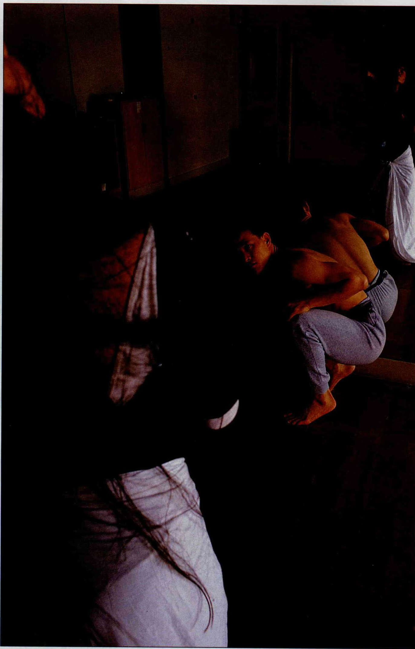 加入雲門,第一次上課,大家換起貼身的韻律服。半天了,獨不見吳興國,催促中,才見打扮從未如此前衛的他臉紅到脖子靦腆地走出來……。「在雲門,是我最榮耀的一面,也是觀念開放的開始」,吳興國表示。