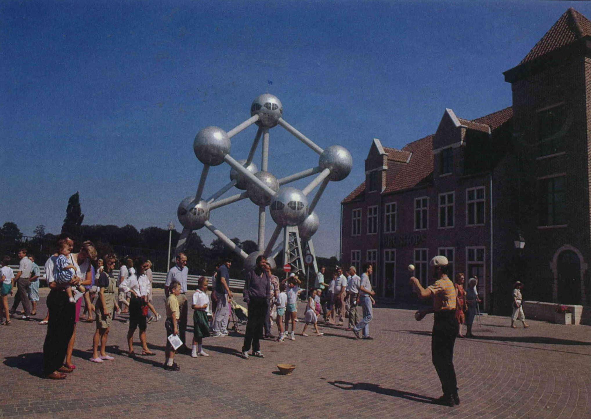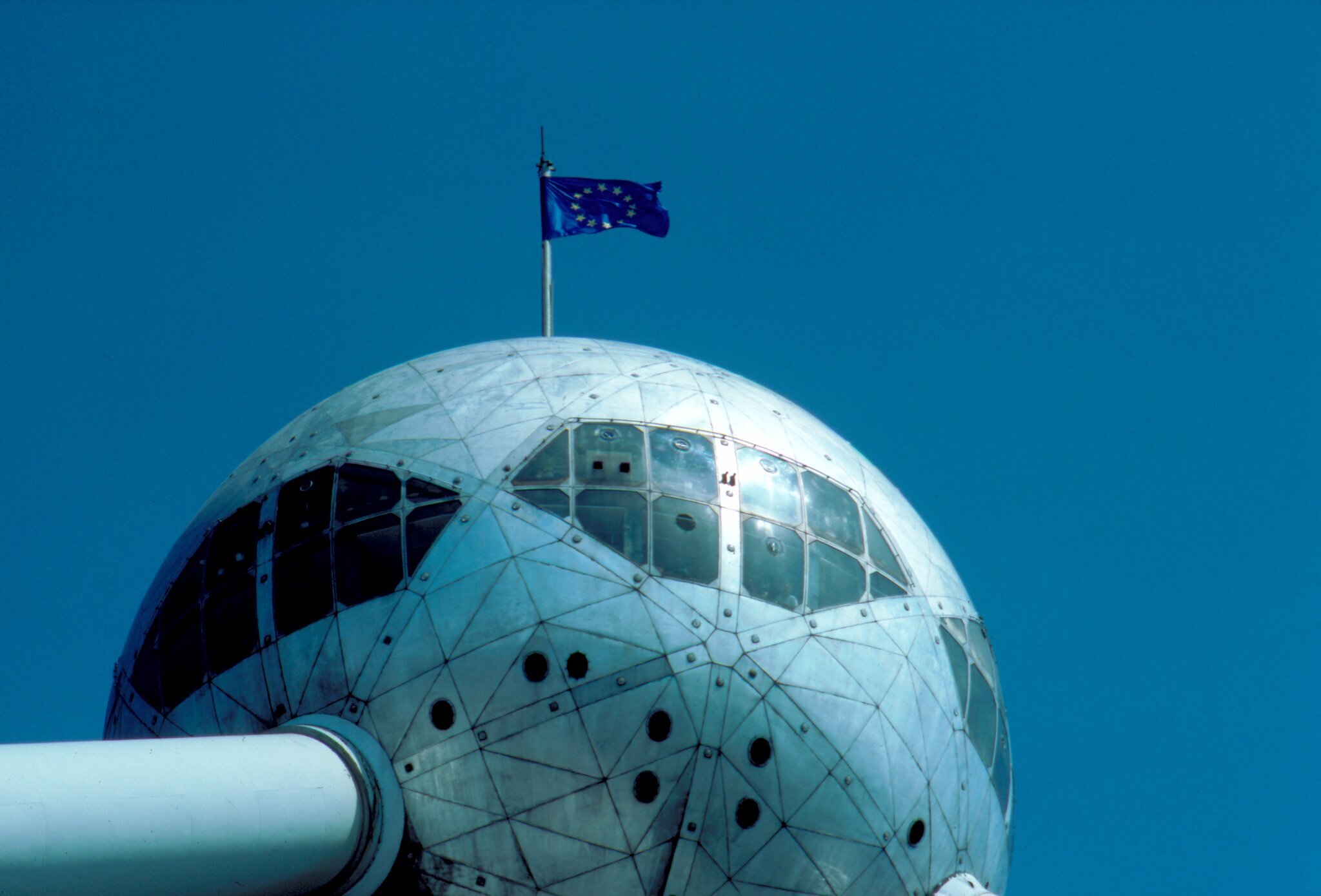 這座原子結構造型的建築位於歐市總部——比利時首都布魯塞爾。頂上插著歐洲共同市場的「國旗」。(鄭元慶)