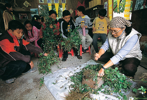 寒假中「泰雅勇士營」吸引都市孩子認識部落文化,這堂課讓孩子摘採咸豐草,DIY染布,有趣味也有體驗,但其實這是客家人的傳統。