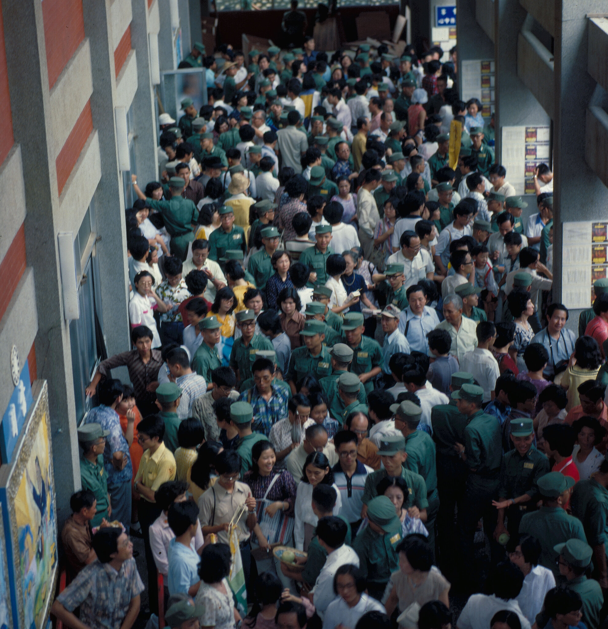 龐大的車陣停放在介壽台前的廣場上,數萬家長湧到了嶺上。整個嶺上溢滿了人潮與歡樂。屋堳峊~、樹下、草坪上,都可看見父母兒子,或阿婆孫兒,或情侶雙雙,在殷殷探詢,切切叮嚀。