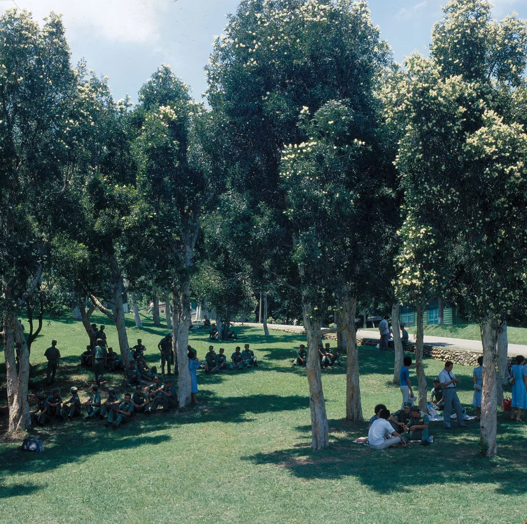 車隊開上山坡,進入成功嶺營區,首先映入眼簾的,是道旁巨大石碑上,豪邁有力的三個朱紅大字「成功嶺」。而後,便是滿山遍地的「綠」了。綠的樹、綠的草地、綠的營房、綠的軍服,成功嶺給人的第一印象便是象徵希望與活力的綠。那一大片載滿修剪整齊的樹木與草皮的綠色大地,不覺讓人興起了肅穆之心。車上原本高談闊論的青年學生,一時都緘默下來,靜肅地望著他們即將生活六個星期的新環境。