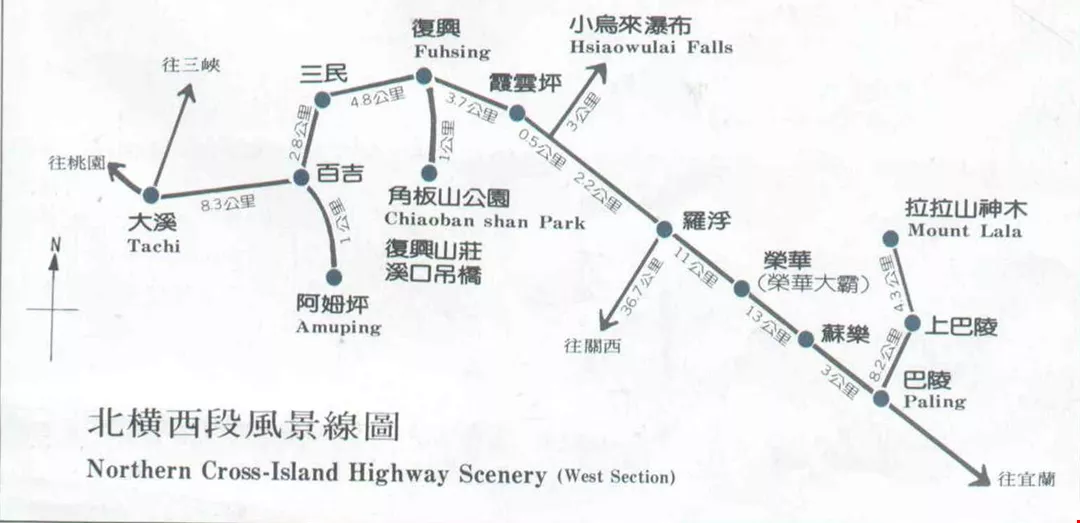 由大溪經小烏來到拉拉山,全程往返約一百卅公里,最好安排四天三夜或三天兩夜的行程。