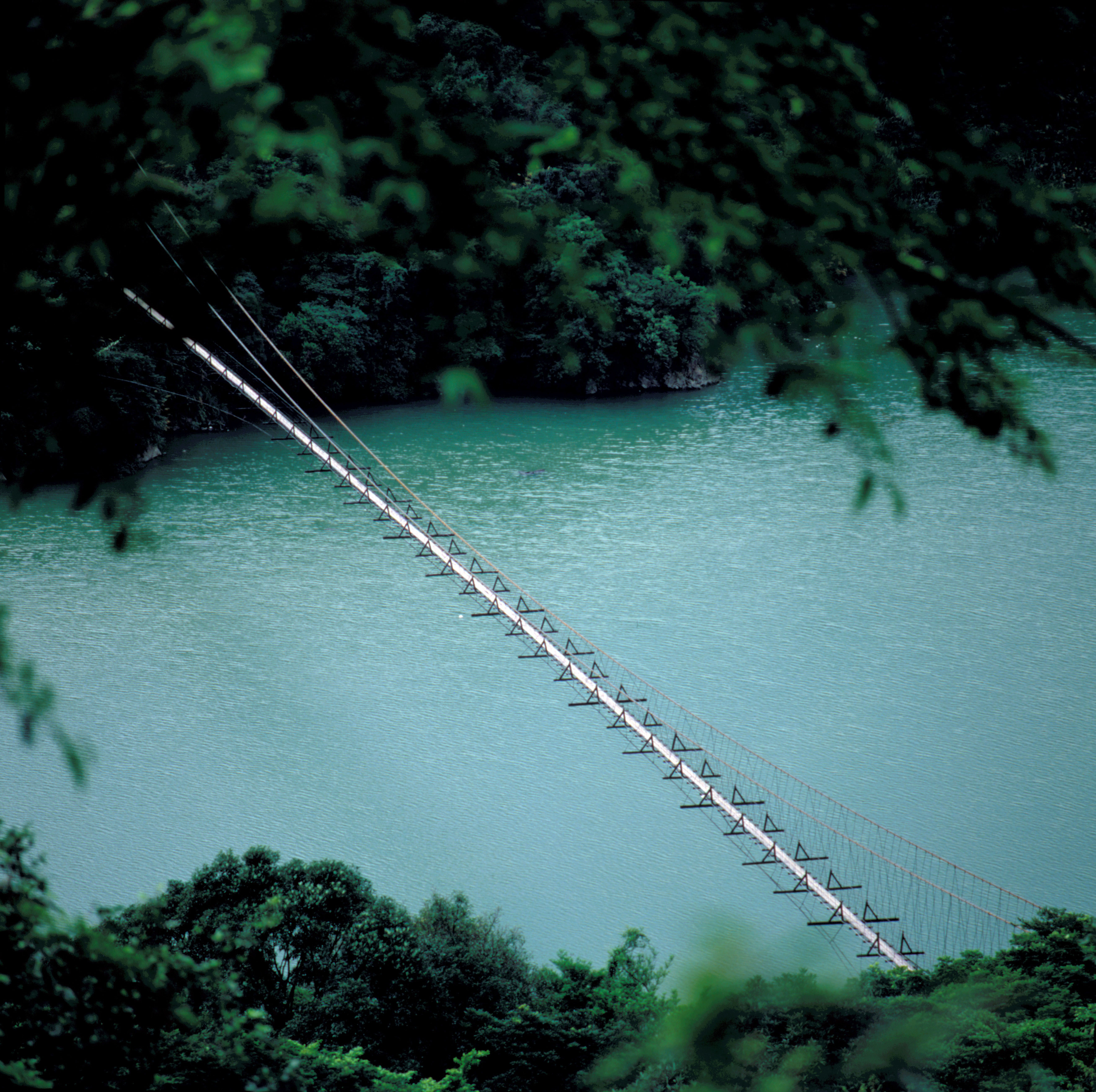 再往下,就到溪口吊橋了。我們足足花了五分鐘,才幌完這條約二百卅公尺長的鐵索吊橋。