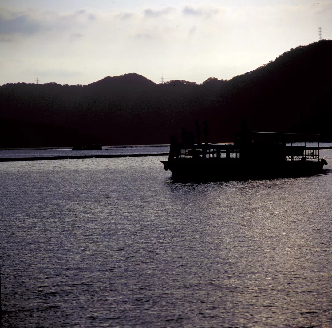 橋旁是渡船口,本來每天下午四點半就不開船了。不過我們運氣好,船家因為不願空船回家,一直在等著,結果一條偌大的船隻坐我們幾隻小貓,就乘風而去。
