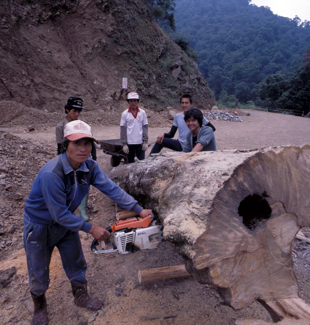 拉拉山是自然生態保護區,活樹不能砍,他們鋸的是枯木。(簡永彬)