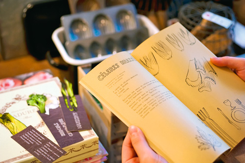 店內的藏書頗具特色,多是在一般大書店不容易找到的書,像是法國Marabout出版社以各種常用食材為主題的一套食譜,它把每一種食材製成一本小冊,可以快速提供料理靈感,並且還附上食材造型的小書籤,讓讀者可以方便查找,非常有創意。