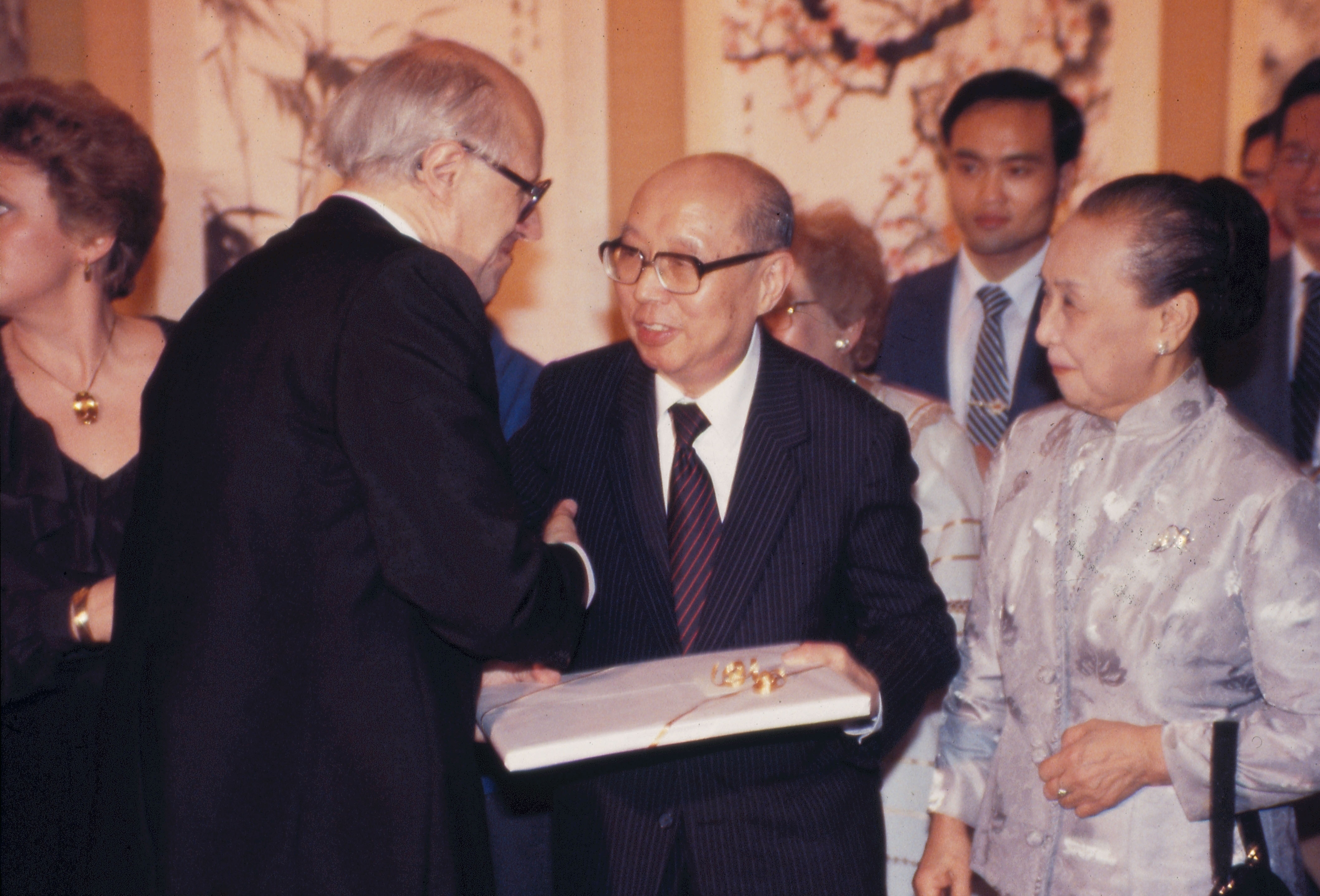 圖4:演奏會後,我方特舉行酒會款待樂團團員,羅氏與嚴前總統伉儷互贈禮物。(李影/唐根禮/李培徽)