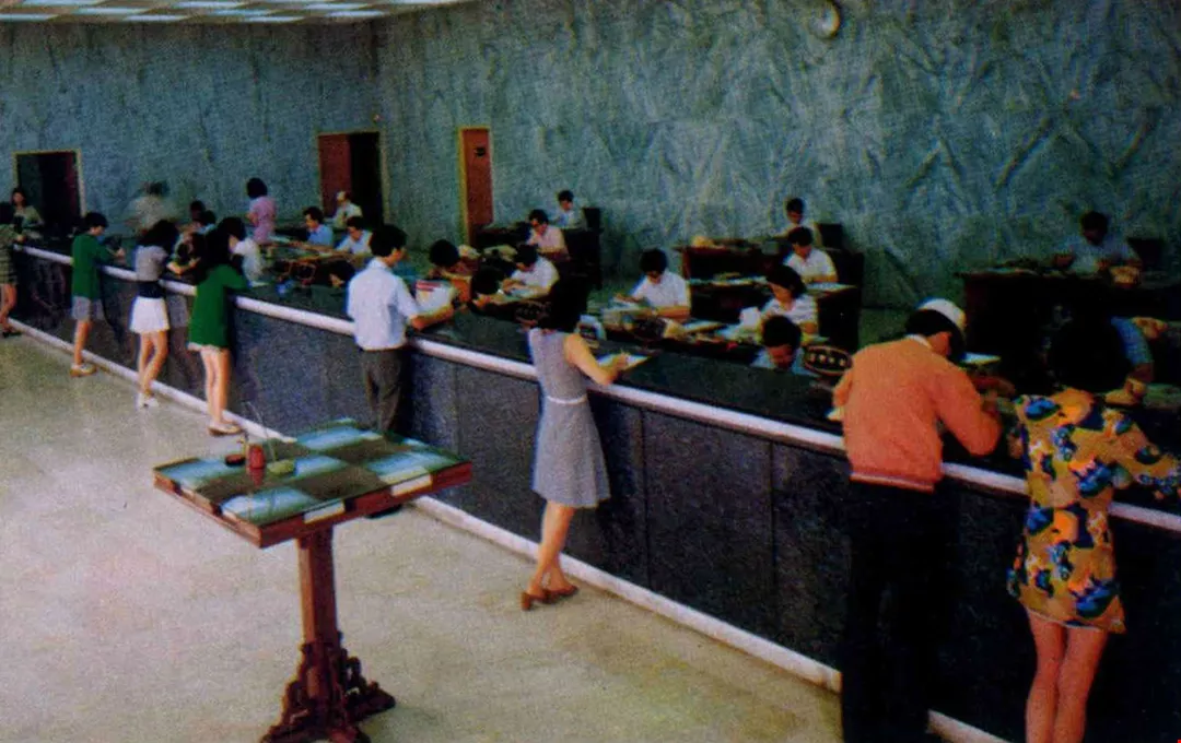 台北市銀行很多,競爭激烈,中國商銀因能不斷提供新服務,適應顧客各種需要,業務蒸蒸日上,使營業廳顯得特別忙碌。(恆水)