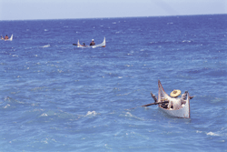 徘徊在新舊文化之間,一手握筆、一手操槳的夏曼藍波安,知道他書寫民族的過程是一種珍貴的無形財產,但在現實生活中,卻無力扮演好賺錢養家的「夏曼」角色,他有著深深的寂寞和無奈。