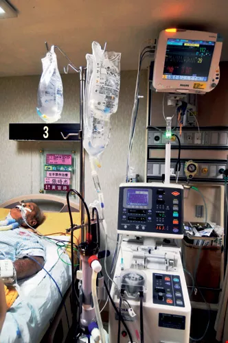 充滿儀器設備的加護病房(上)、離不開維生氧氣的呼吸照護中心(中),這條回家的路,現代人越走越艱辛。