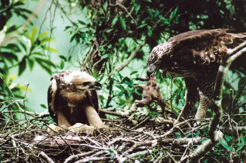 威武挺拔的熊鷹是台灣體型最大的居留性猛禽。由於一年只營一巢,而且只有一顆蛋,在獵人環肆、棲地破壞威脅下,要成功繁殖頗為不易。
