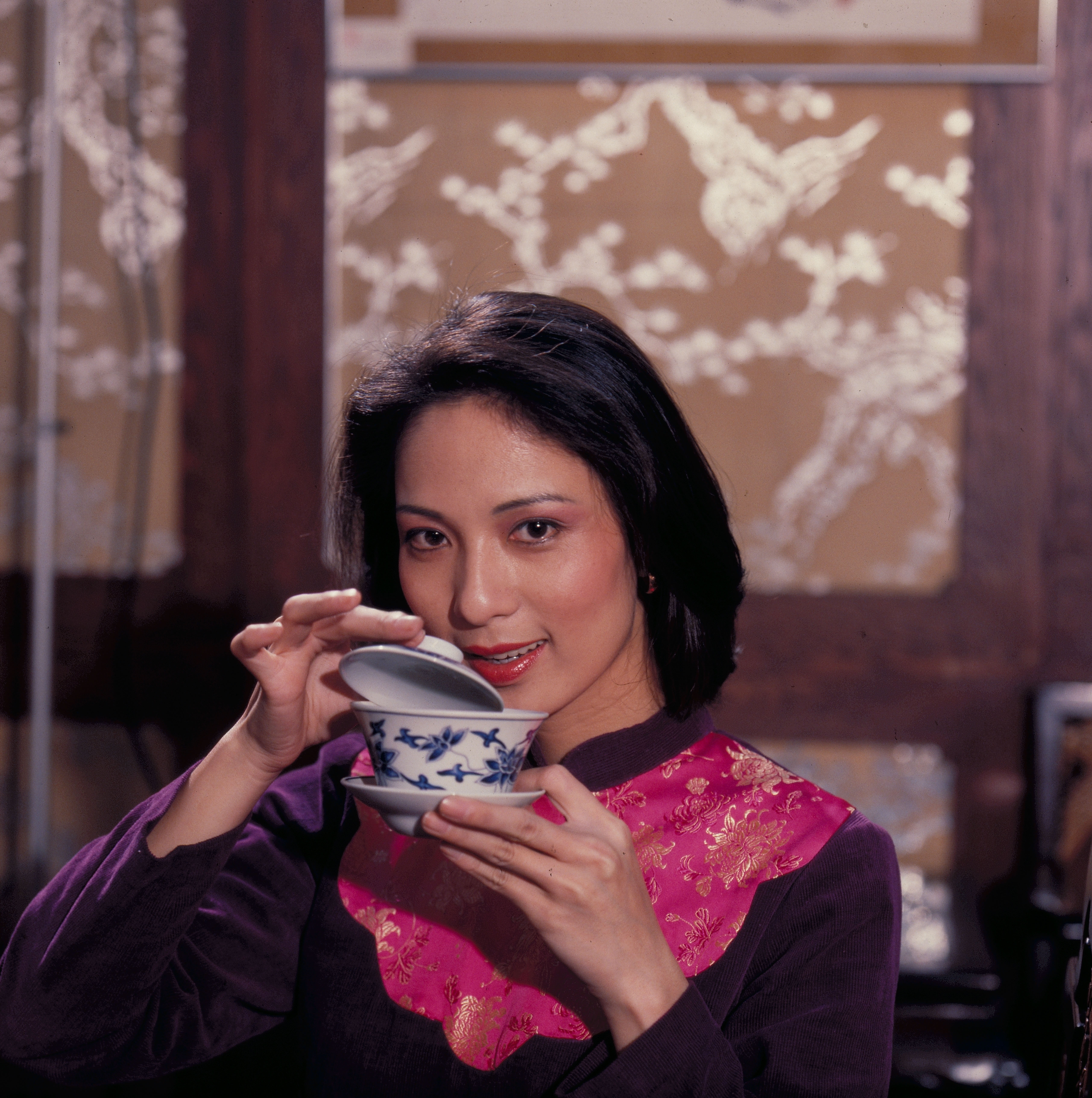 傳統的「蘭花指」拿杯法,姿態優雅。(魏嬡)