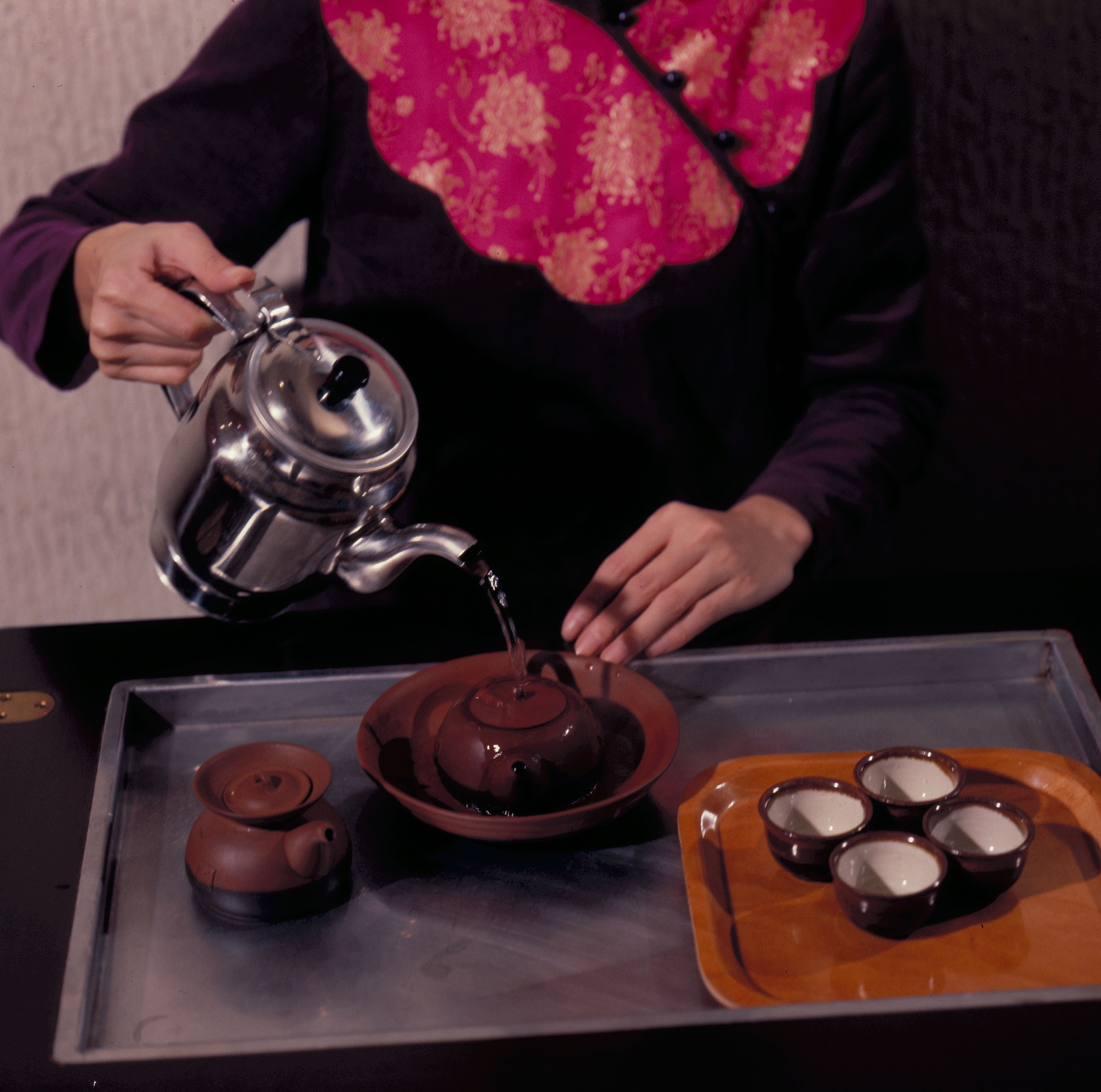 第一泡又稱「溫潤泡」,目的是讓茶葉吸收溫度的濕度,一般都不飲用,將之倒在茶池中,有保溫作用。(魏嬡)