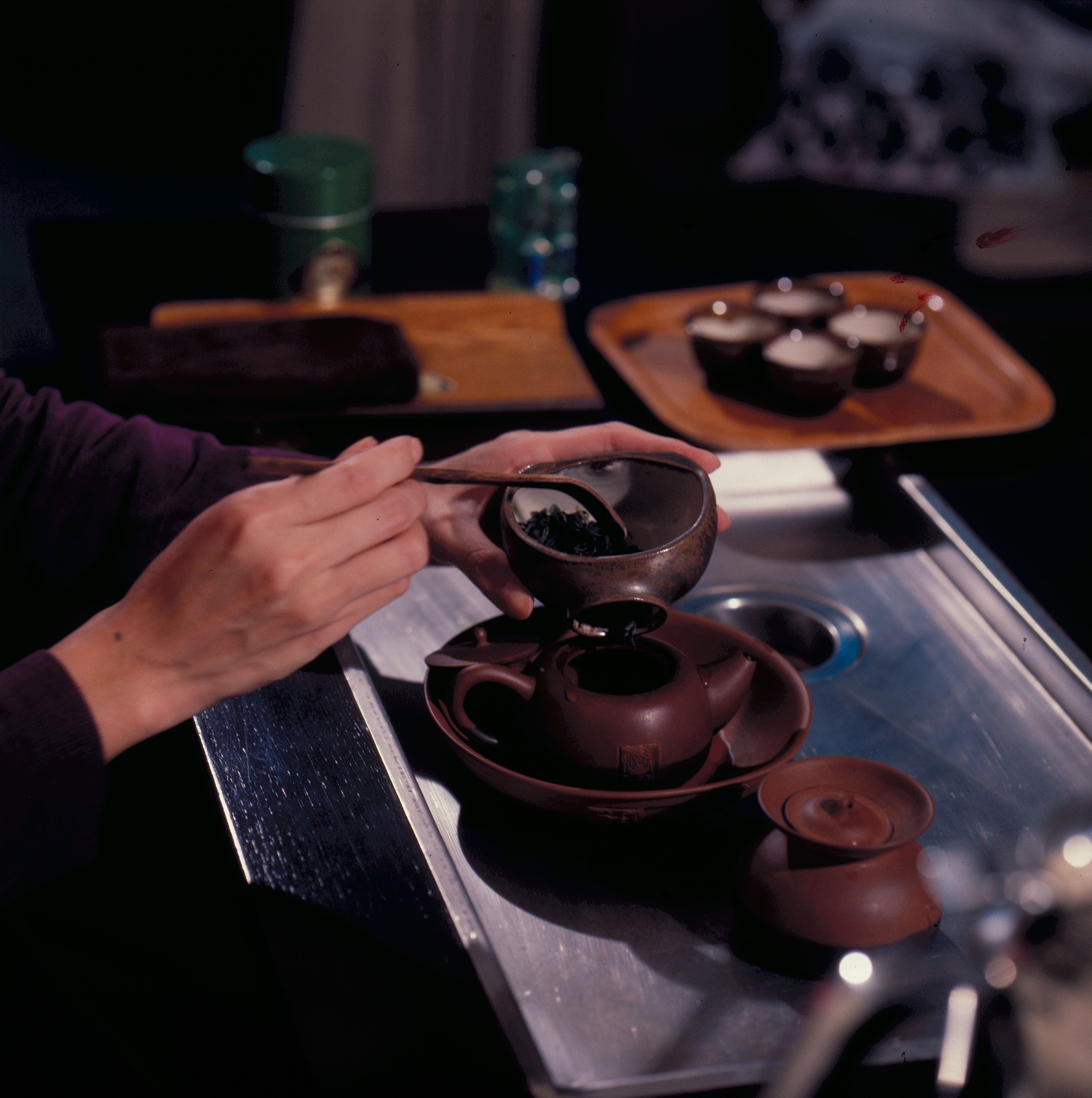 把壺溫熱後,開始置入茶葉。(魏嬡)