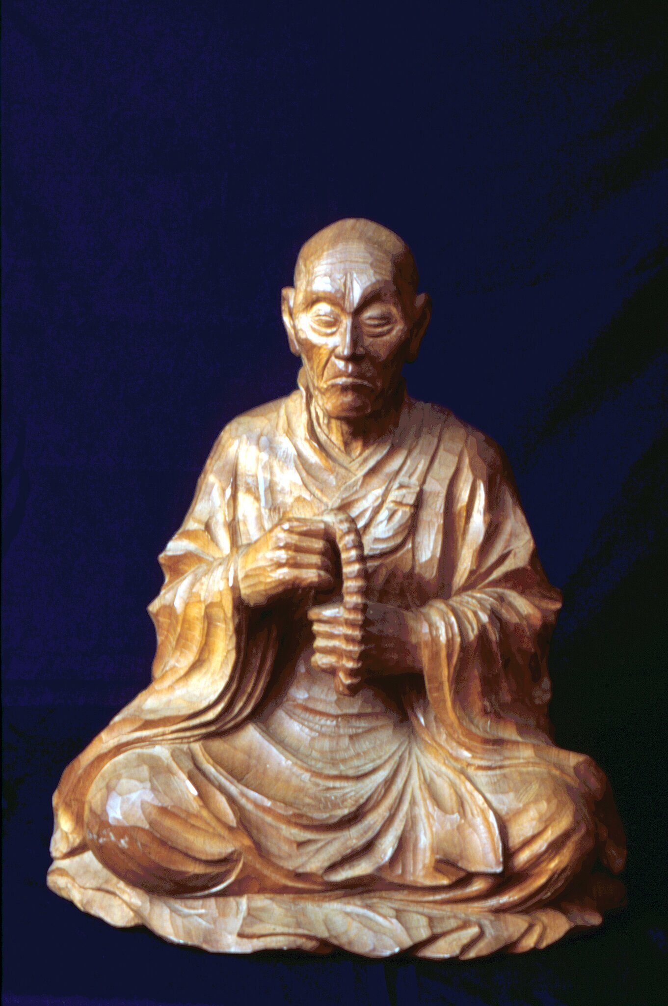 陳正雄深切體會人生疾苦因此他刻的僧人也帶著悲憫眾生的「苦像」。(張良綱)