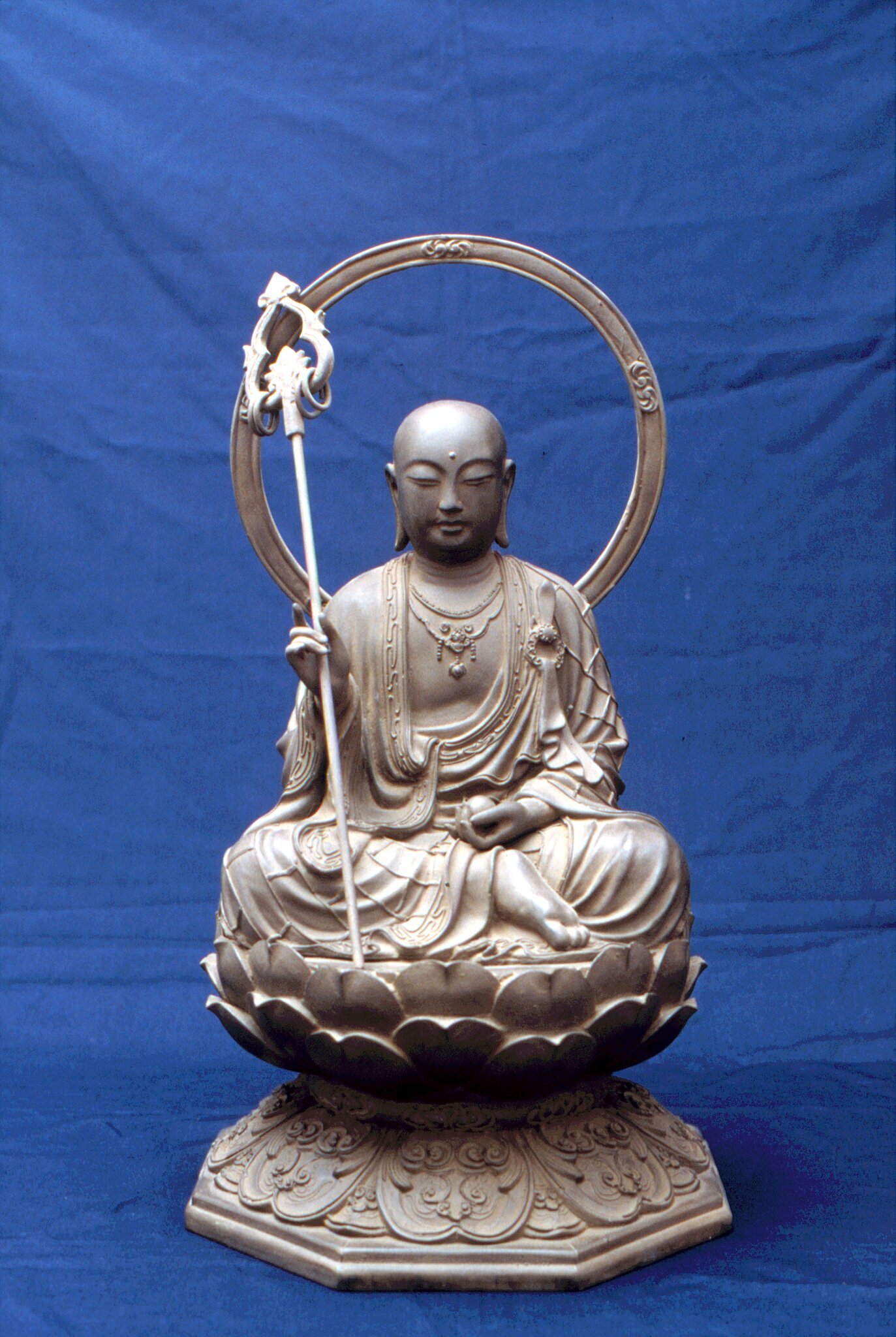 謝毓文主張現代佛像創作,應以唯美做前導,才能使一般人容易接受。上圖是他的作品——地藏王菩薩。(張良綱)