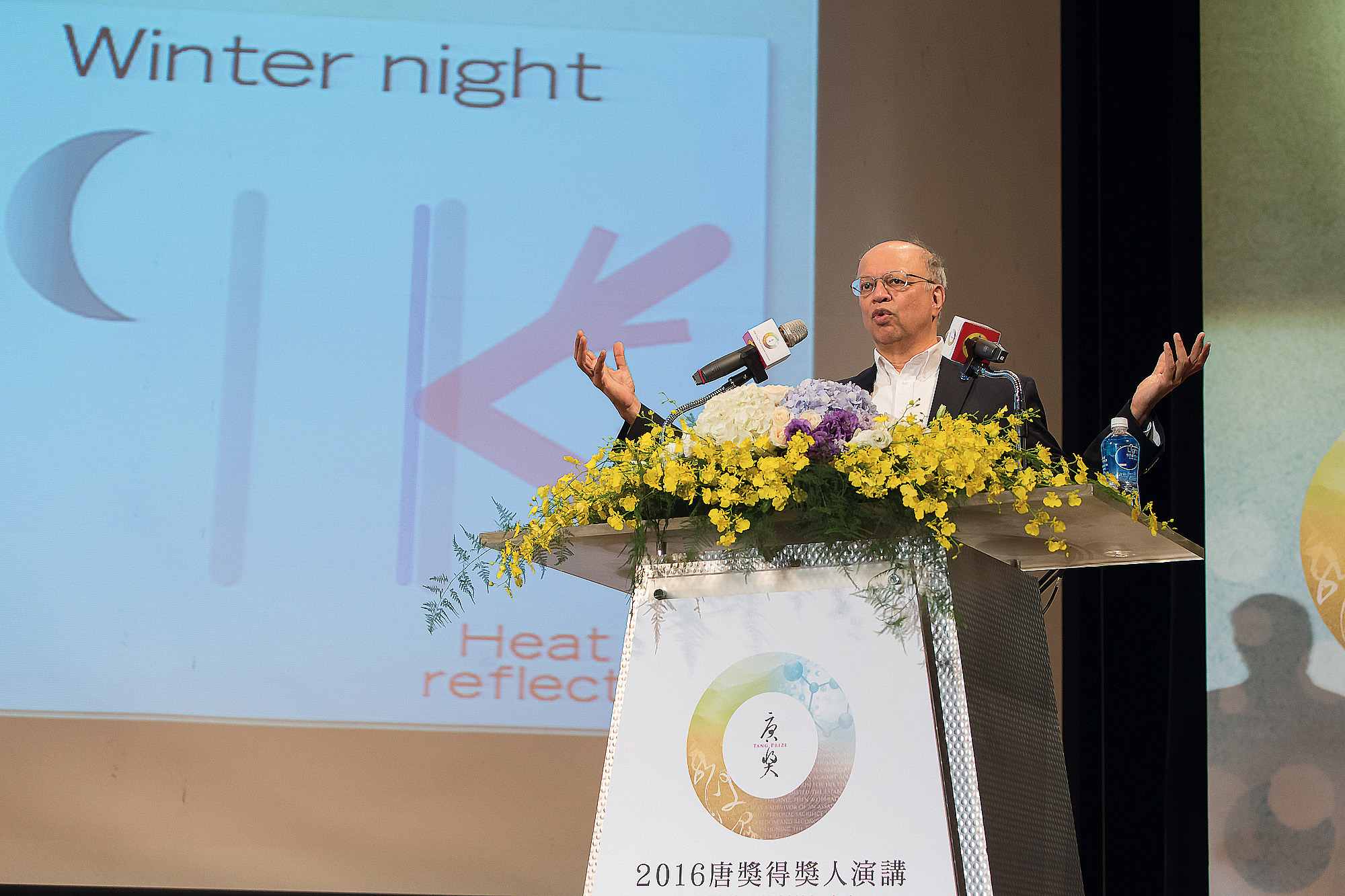 美國工程院院士阿胥侯.賈吉爾代表永續發展獎 得獎人亞瑟.羅森費爾德在台北發表演說。