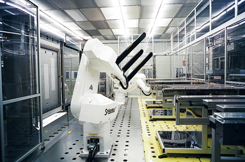 當時(2003年)正是5代廠長的王志超,堅持將無塵室直接蓋在地面上,雖然得克服潔淨度的問題,卻能大幅降低成本。至於DDS系統,則是在各段工程之間,設立承載容器(Cassette),