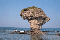 小琉球的守護神──花瓶石,是一座高達九公尺的珊瑚石灰岩,奇花異草叢生在堅硬的岩頂間,旁邊還伏有一座石龜,妙趣天成。