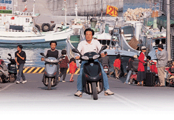 小琉球環島公路通達四方,不過島上汽車罕見,居民習慣以摩托車代步。