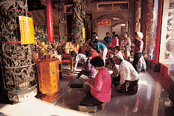正因為討海生涯風險高,漁民的信仰非常虔誠。小島上有一百多座廟宇,而且一座比一座富麗莊嚴。有「眾廟之母」之稱的碧雲寺,供奉的是觀世音菩薩,晚上十點才關廟門,凌晨兩、三點又得開放,因為長年夜間出海捕魚而養成早起習慣的老人家們,往往天沒亮就守在廟口,等著向菩薩問安呢。