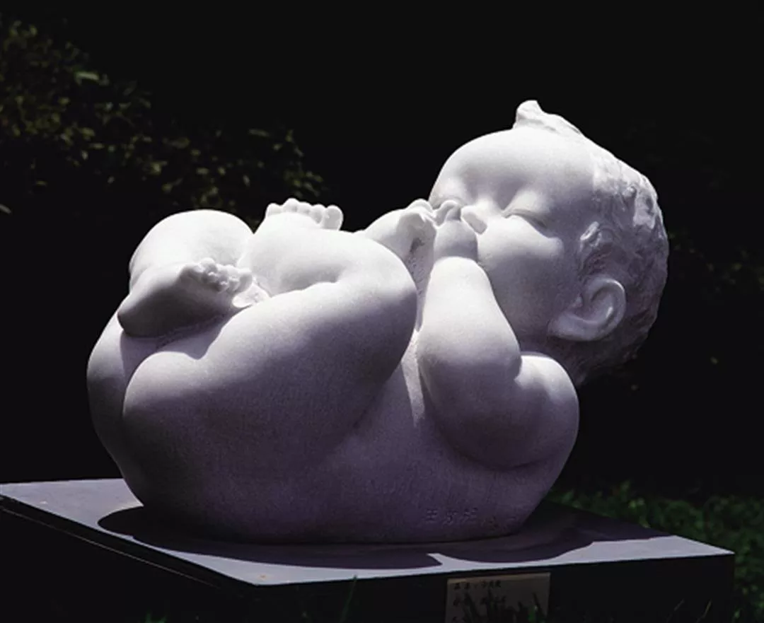 左右二圖為漢白玉石所雕之母子親情系列作品。