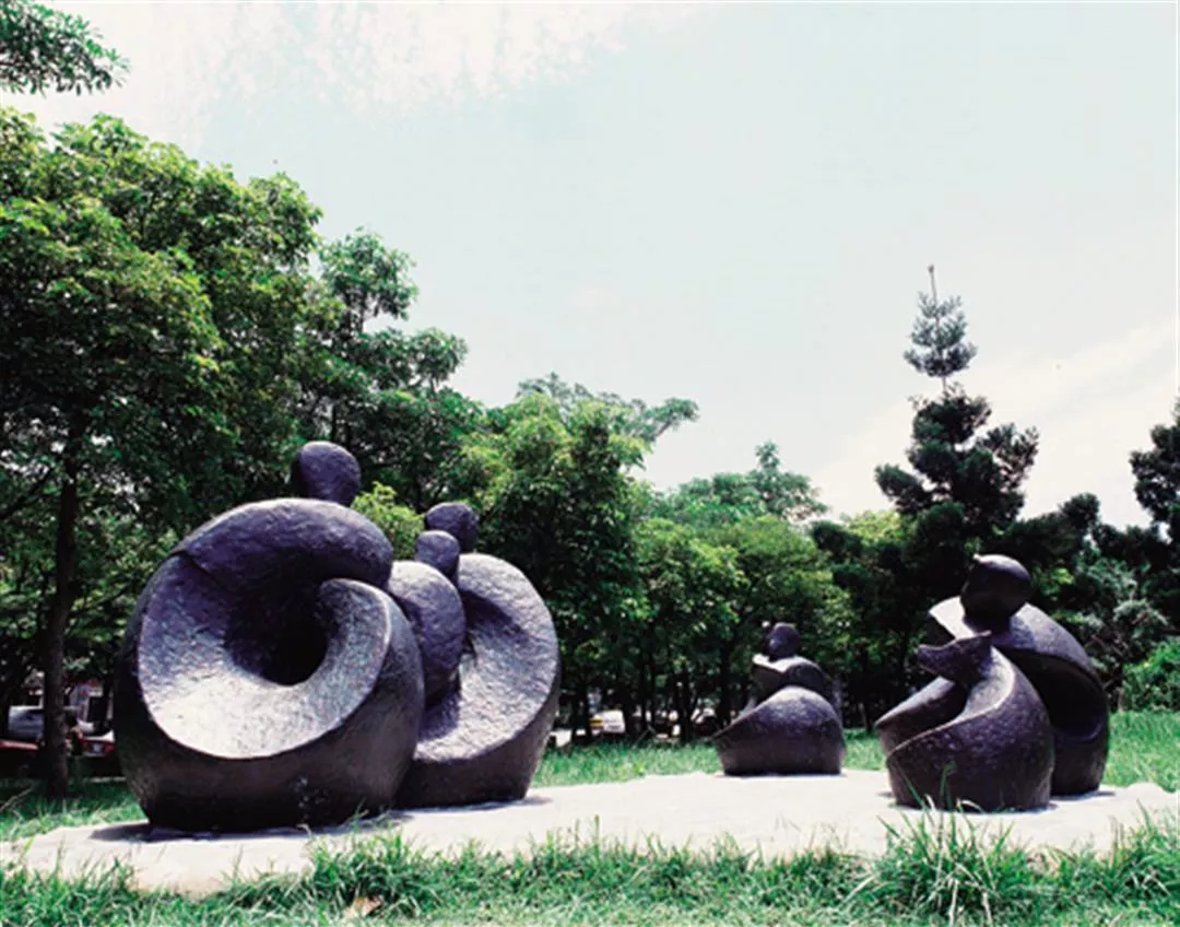 都會公園內綠草如茵的草地上,座置線條渾厚圓潤的銅質雕像群,在車水馬龍的嘈雜中增添溫馨閒適之感。