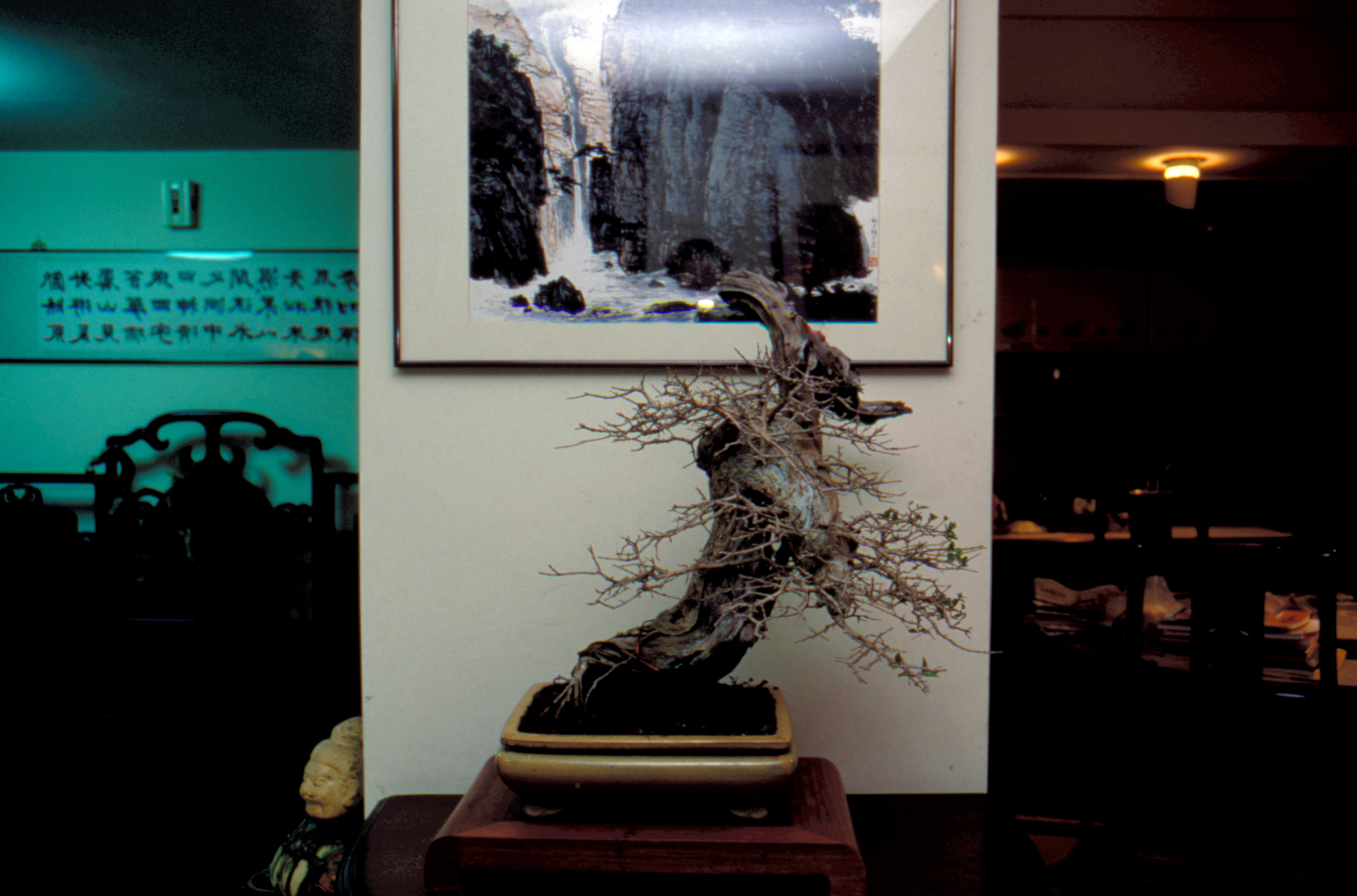 所以案頭那盆小小的盆景除了山水意境外,還給人一份濃郁的人情,怎不令人在虛實間神遊之際,陶陶而生胸中丘壑?