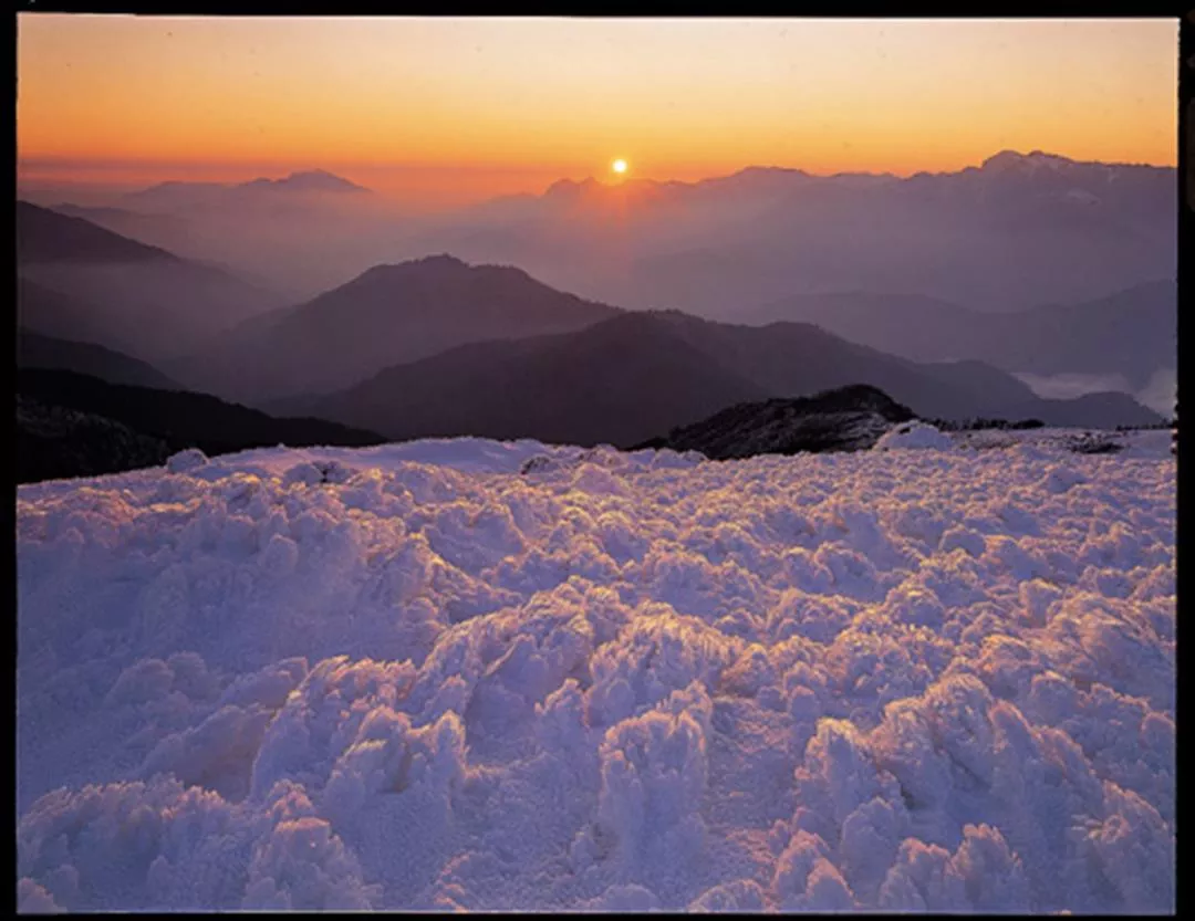 南湖大山標高三千七百四十公尺,是國內積雪量最多的高山,喜歡拍攝雪景的陳炳元,總在時序入冬之際,趕在寒流侵襲前,就備妥充足的食物、適當的雪攀設備及攝影器材上山。