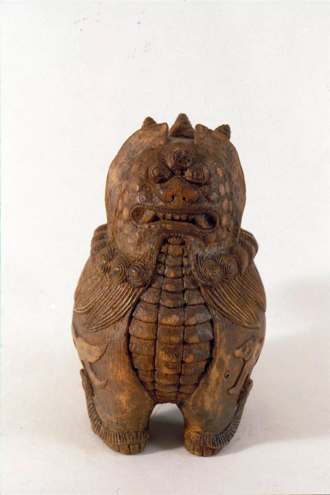 受年畫「一團和氣」畫風的影響,這隻竹雕的獅子呈現出濃厚的圓味。(鄭元慶)